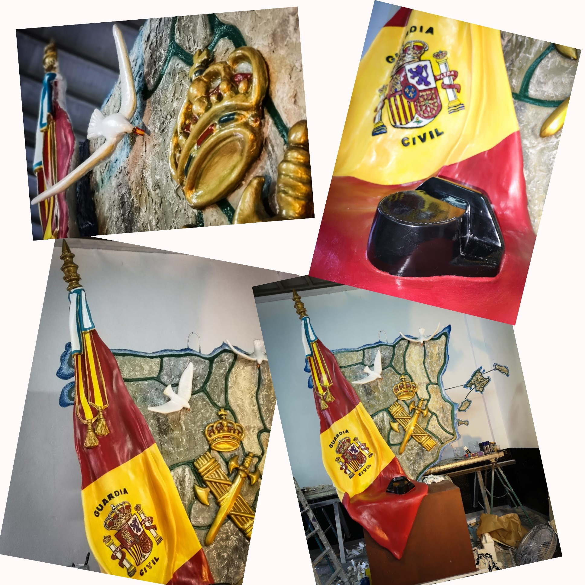 Respecto a su obra, comenta que “he querido plasmar la guarda y custodia de la Guardia Civil, en la cual aparece la bandera nacional y un tricornio que descansa en ella, así como dos palomas que simbolizan la paz y la unión de España”.