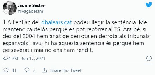 Sastre ha mostrado su satisfacción en redes sociales, a través de un breve hilo en Twitter que reproducimos a continuación: