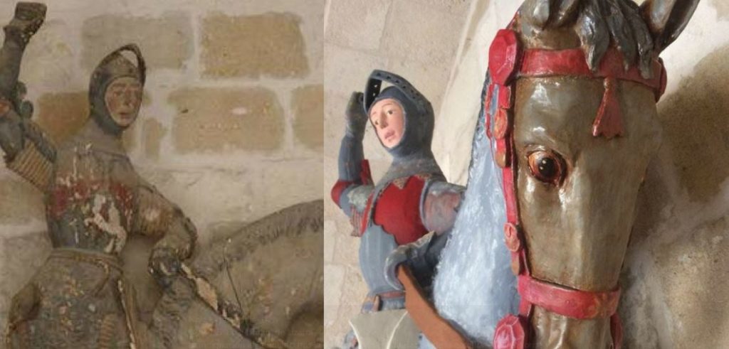 San Jorge ha sido convertido en el nuevo Ecce Homo. Localizada en Navarra, la escultura restaurada presenta una imagen grotesca tal y como sucedió con la famosa restauración del fresco que dio la vuelta al mundo.