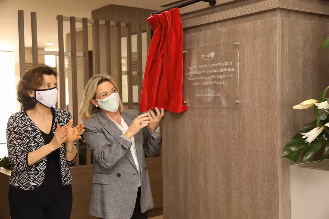 DomusVi Sa Riera, el nuevo centro residencial de DomusVi en Palma de Mallorca, ha sido inaugurado hoy por Fina Santiago, Consejera de Asuntos Sociales y Deportes del Gobierno de las Illes Balears, quien junto a Gregorio Molina, director general de Atención a la Dependencia, han visitado las instalaciones de la residencia acompañados por Josefina Fernández, Presidenta Institucional y de la Fundación DomusVi.