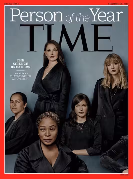 Este año, han decidido enaltecer a todas las personas que romper el silencio sobre el acoso sexual: The silencie breakers. 'Time' homenajea a todas aquellas personas que han roto el silencio y se han sumado públicamente a la lucha contra el acoso sexual en un año en el que han abundado escándalos de este tipo, también en entornos sociales de alto standing como Hollywood, sobre todo en torno al caso Harvey Weinstein.