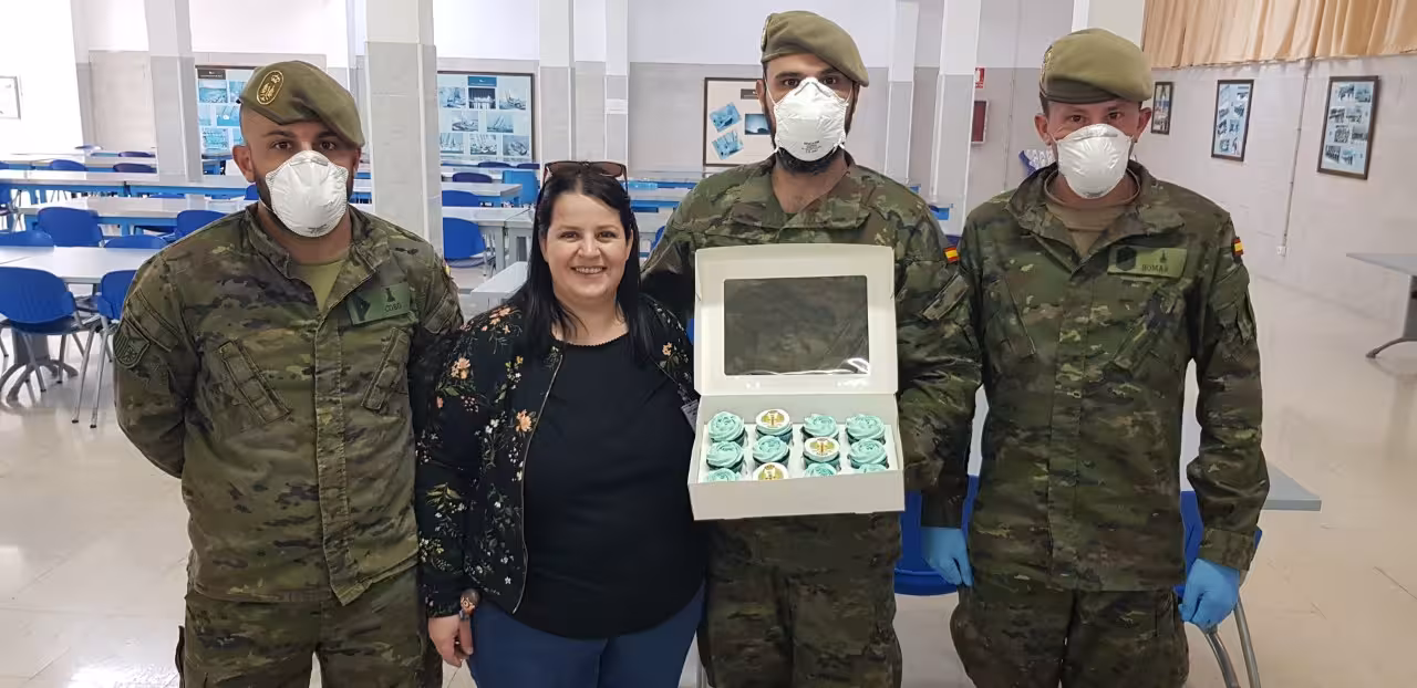 Con tal motivo esta mañana se han desplazado al Acuartelamiento Jaime II de Palma, donde se encuentra ubicado el Regimiento de Infantería Palma 47 y la unidad de Zapadores de la Comandancia General de Baleares, para hacer entrega en el comedor de la instalación, de una serie de productos de repostería, entre los que destacaban algunos con el logo del Ejercito de Tierra.