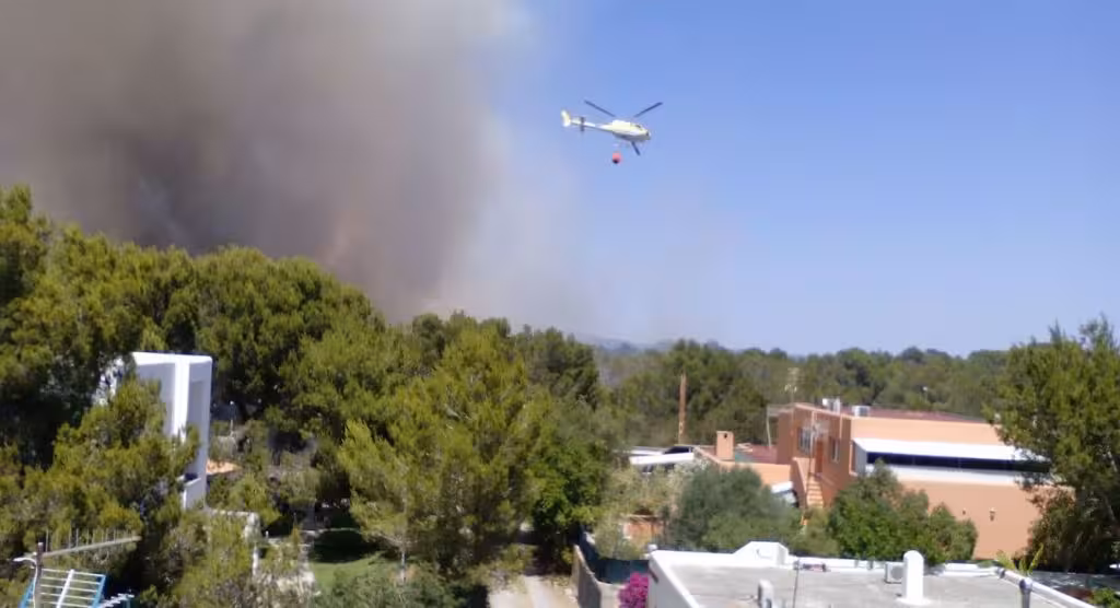 Tres aviones, tres helicópteros, dos autobombas, cuatro brigadas, cinco agentes de Medio Ambiente y dos técnicos están actuando en la zona, además de los bomberos de Ibiza.