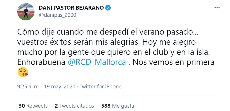 Unas felicitaciones a las que también se unieron Dani Pendín y Dani Pastor en redes sociales, sus dos colaboradores más estrechos.