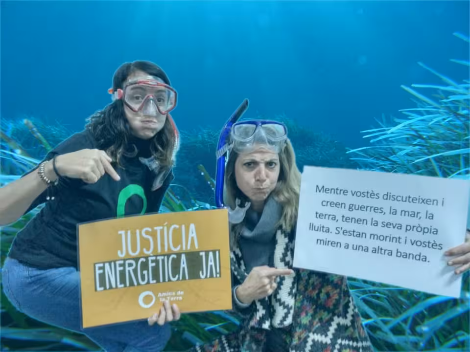 Acompañando al vídeo hemos lanzado una fotoacción en las redes sociales en la que pedimos a la sociedad civil que envíen mensajes imitando que están debajo la mar o enviando barcos de papel con mensajes como hacen los alumnos en el vídeo, reclamando justicia climática y energética.