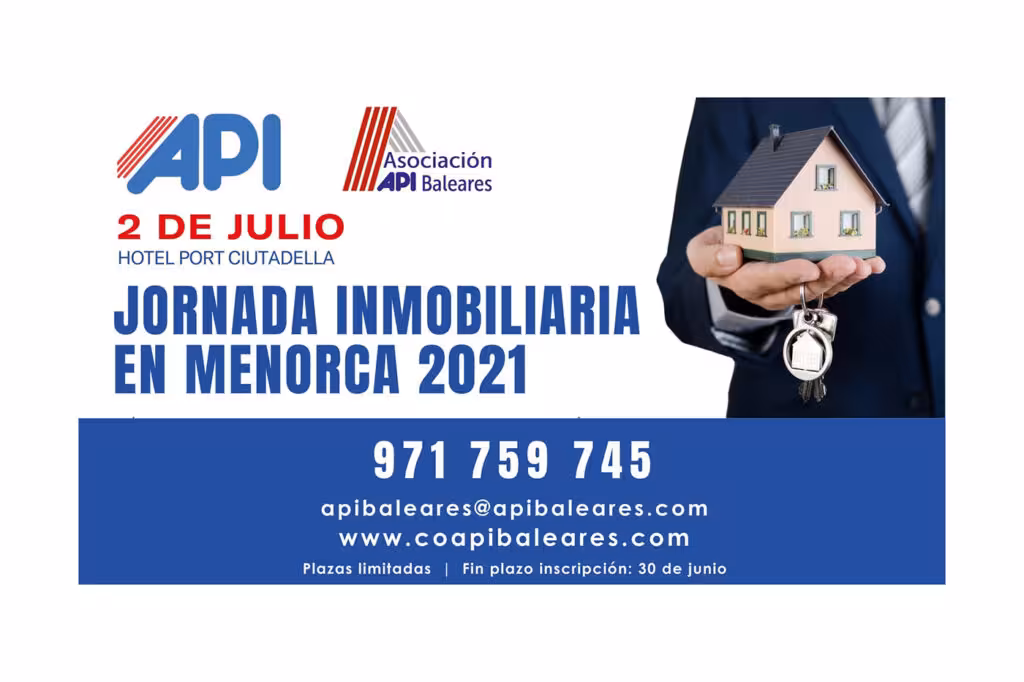 El Colegio de Agentes de la Propiedad Inmobiliaria de Balears y la Asociación API Baleares celebrarán el próximo 2 de julio en Ciutadella la Jornada Inmobiliaria en Menorca, dirigida a todos los profesionales relacionados con la intermediación inmobiliaria.
