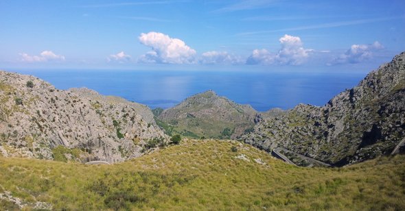 Para disfrutar de estas vistas tendrás que conducir por la carretera más serpenteante de Mallorca. Las vistas durante todo el recorrido son espectaculares, pero las que se observan desde la curva denominada Nus de Sa Corbata, dejan sin respiración. Además, al final de la carretera se encuentra uno de los tesoros de la isla que bien merece una visita tanto en verano, para darse un baño en aguas cristalinas, como en invierno, para disfrutar de la paz que se respira, se trata de la playa entre acantilados que da nombre a la carretera: Sa Calobra.