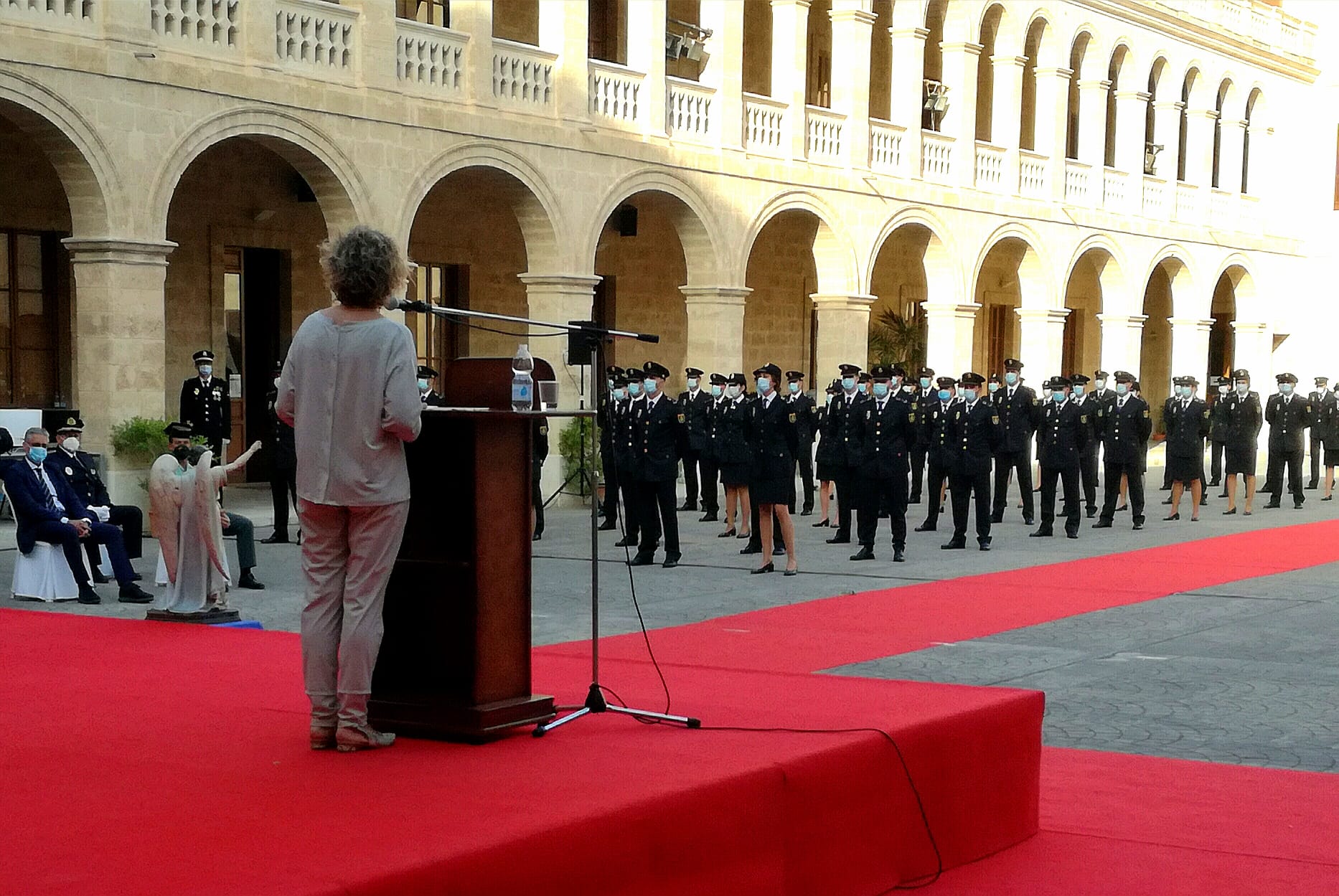 Según ha expresado la delegada del Gobierno en Baleares, Aina Calvo, este martes, en el patio de la Misericordia, donde 59 agentes han jurado su nuevo cargo, "en estos meses, vuestro papel, y el de todos los policías, ha sido ejemplar y crucial para la protección de la salud de las personas".