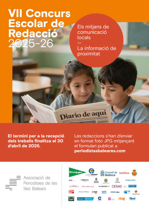 La Asociación de Periodistas de las Islas Baleares (APIB), integrada en la Federación de Asociaciones de la Prensa Española (FAPE), convoca el VII Concurso de Redacción Escolar sobre periodismo APIB, cuyo objetivo es dar a conocer la importancia del periodismo en el ámbito educativo, trasladar la importancia de un periodismo riguroso y fomentar un consumo crítico de noticias. El reto de esta edición es que los alumnos reflexionen sobre el papel de los medios de comunicación locales y la información de proximidad.