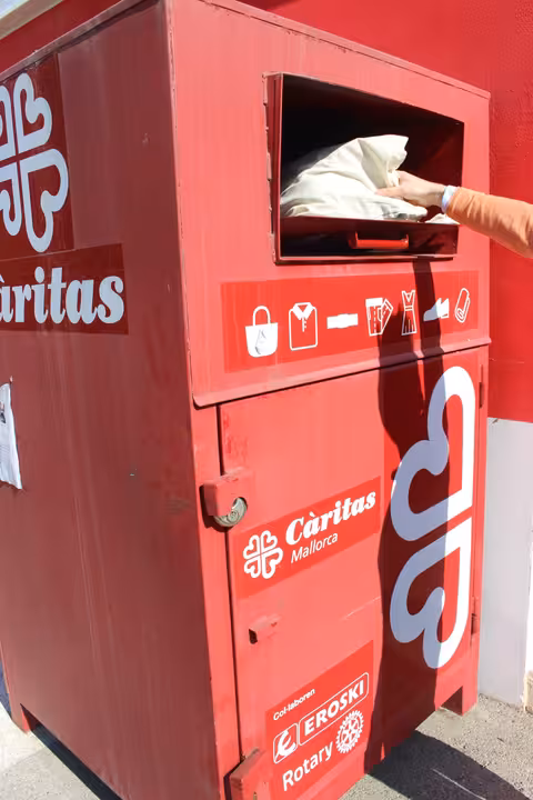 Fruto del acuerdo de colaboración entre Càritas Mallorca y Eroski, los 32 contenedores situados en sendos supermercados de esta cadena, han recogido durante 2023 un total de 154.917 kg de ropa en buen estado, que es gestionada por la ONG. Por trimestres, cabe destacar los 47.365 kilos de roba recogidos entre octubre y diciembre, frente a los 36.326 kilos del primer trimestre, 35.110 kilos del segundo y 36.116 del tercero.