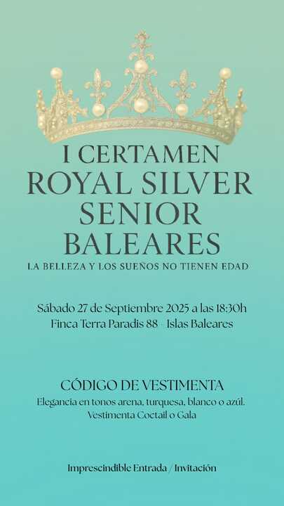 Jurados de categoría y prestigio, personalidades influyentes en el mundo de la moda y la estética, aportando su mirada experta para dar aún más valor a este encuentro. Royal Silver & Senior Baleares 2025 será un acontecimiento único, con vocación de convertirse en el primero de muchos. Una celebración de la belleza, del talento y de la fuerza de los sueños que nunca se apagan.