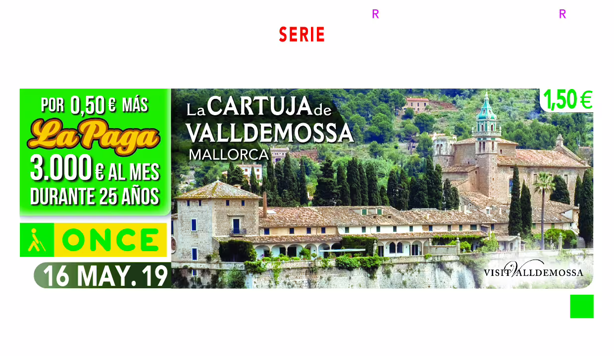 El Cupón de la ONCE dedicado a la Cartuja de Valldemossa ha repartido 105.000 euros en Ciutadella, en tres cupones premiados con 35.000 euros cada uno en el sorteo del 16 de mayo.