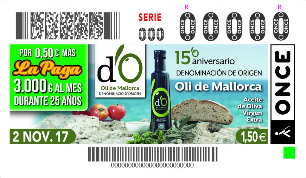 El cupón de la ONCE del jueves, 2 de noviembre, estaba protagonizado por uno de los productos estrella de Illes Balears: el Oli de Mallorca, cuya Denominación de Origen cumple 15 años. Cinco millones y medio de cupones han difundido las excelencias de este aceite por toda la geografía española.