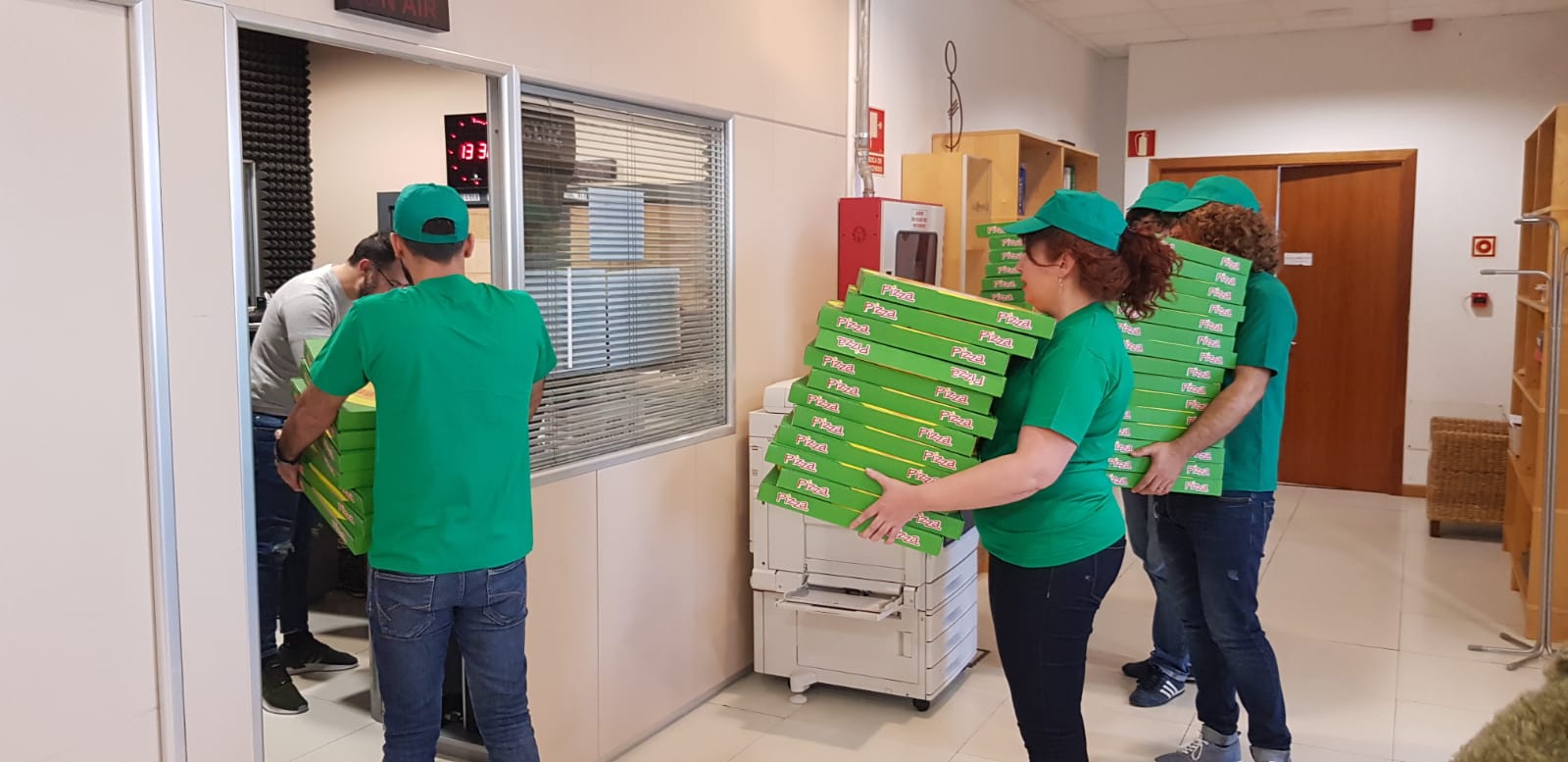 El programa conducido por Juan Carlos Fernández y Álvaro Rodríguez ha sido víctima de una divertida broma por parte de algunos de sus radioyentes. Carmen (@NoMediasTintas), Lluís (@AlOtroLado8), Miguel (@no_Tengo_gracia) y Guillermo (@GuillemHB) se han disfrazado de repartidores y se han presentado en el programa con 50 pizzas y una factura de más de 700€.