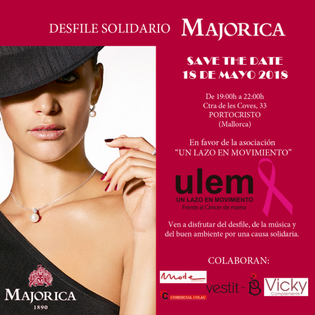 Majorica presenta el próximo viernes 18 de mayo el desfile solidario a favor de la asociación Un Lazo en Movimiento (Ulem).