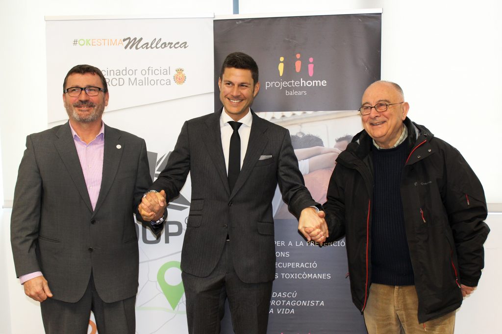 El Presidente y fundador de OK Group, D. Othman Ktiri, y el Director General de Projecte Home Balears, Jesús Mullor, junto con el Presidente de Projecte Home Balears, Tomeu Català, han firmado hoy el primer convenio de colaboración entre ambas entidades.