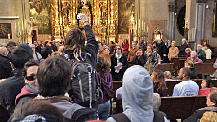 Por su parte, uno de los asistentes que se encontraban ese día escuchando la eucaristía, ha recordado el "gran alboroto" que se produjo, si bien ha asegurado no recordar qué gritaban los activistas puesto que, "por más que quiera, el catalán no lo entiendo bien y no sé lo que decían. Algo de rosarios".
