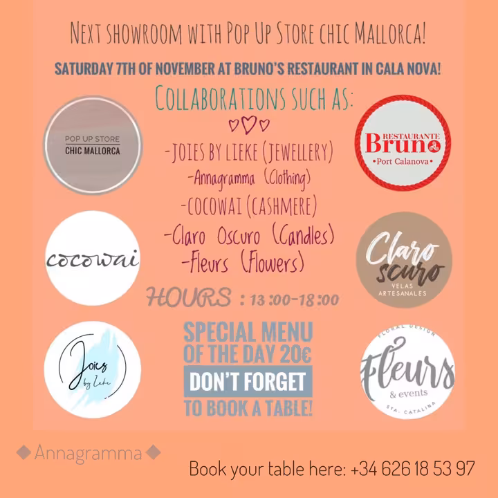 Además, estarán presente en este evento las siguientes empresas: Annagramma, Fleurs, Cocowai, Joies by Lieke y ClaroScuro Ofreciendo sus Productos Exclusivos.