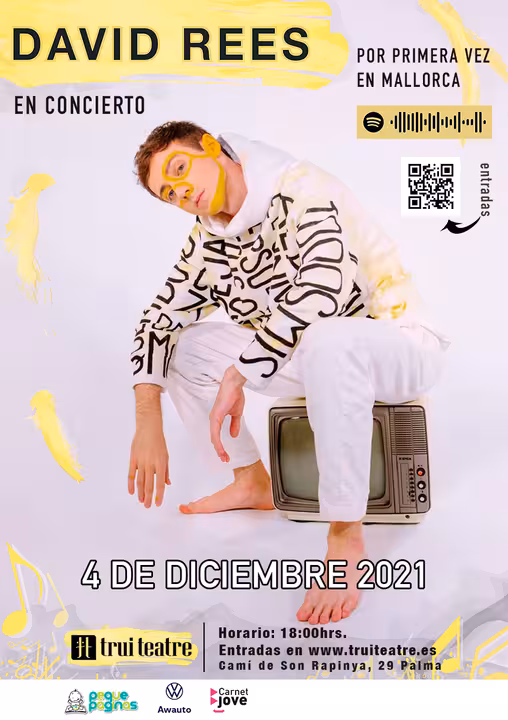 Por primera vez en Mallorca, David Rees es un cantautor español conocido por sus canciones originales cargadas de luz y personalidad, su fenómeno musical con su ukelele y una gran trayectoria en redes sociales.