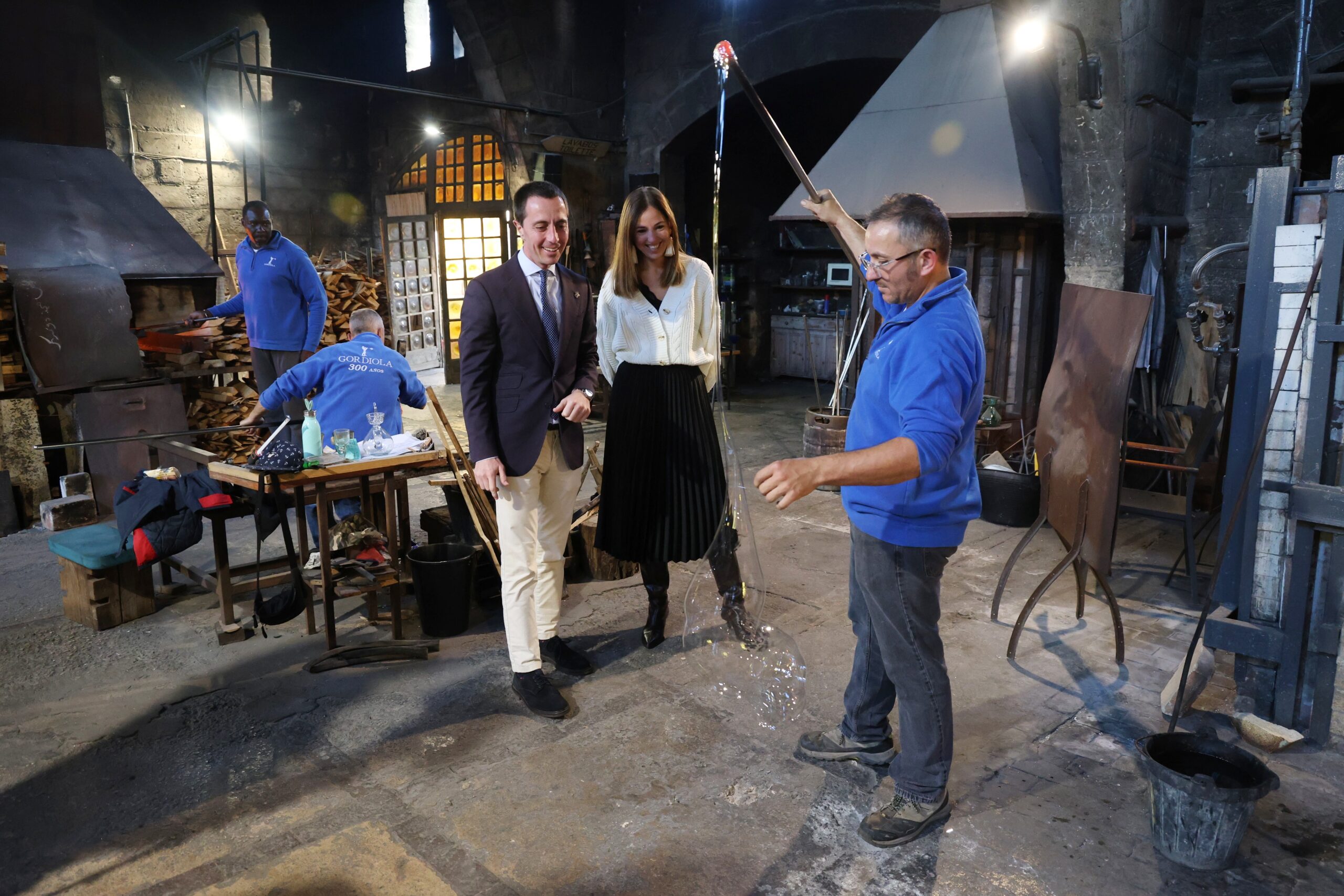 Llorenç Galmés ha estado acompañado de la vicepresidenta y consellera de Cultura y Patrimonio, Antònia Roca, y el director insular de Artesanía, Pere Ferrer. Los representantes del Consell de Mallorca han sido recibidos por los propietarios de la empresa Gordiola, Daniel Aldeguer Palou y Marisa Aldeguer Palou, así como por el director, César Pacheco. Durante la visita han podido ver la técnica de tratamiento de vidrio que se mantiene únicamente en la fábrica Gordiola y en la Real Fábrica de Cristales de la Granja, en Segovia.