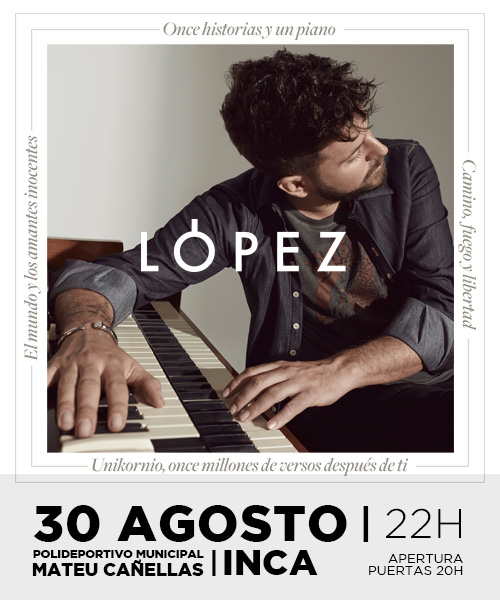 Pablo López regresa a Mallorca el próximo domingo 30 de agosto con su gira 'López, Piano y voz', un nuevo formato que presentará en el polideportivo Mateu Cañellas después de la espectacular acogida de su nuevo show y tras agotar las entradas en varios de sus shows.