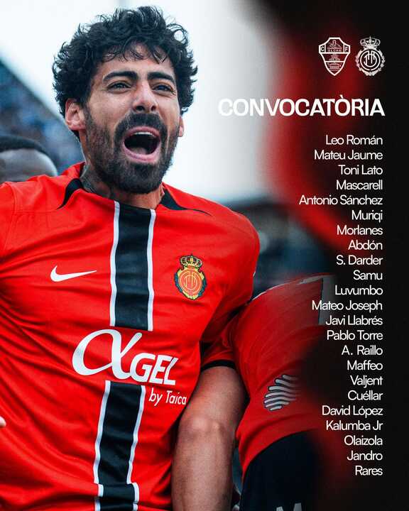 Martín Demichelis ha ofrecido la lista de convocados para el partido del sábado frente al Elche. Las grandes novedades son las de Abdón y Javi Llabrés que regresan tras la lesión. Recordar que Mojica y Jan Virgili son baja por sanción.