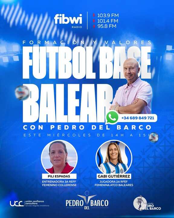 Nuestro espacio Formación y Valores con Pedro del Barco ha repasado la actualidad del Fútbol Base y hemos hablado de Fútbol Femenino con la jugadora del Atlético Baleares, Gabi Gutierrez y con la Coordinadora del Collerense, Pili Espadas.