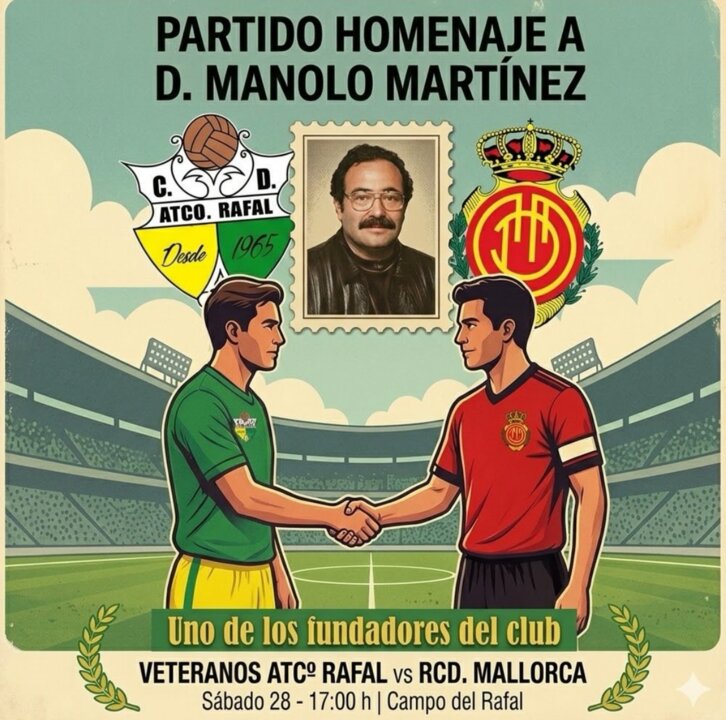 El Atlético Rafal homenajeará la figura de Manolo Martínez con un partido entre los veteranos del club y del RCD Mallorca. El partido se disputará el próximo sábado 28 de marzo.