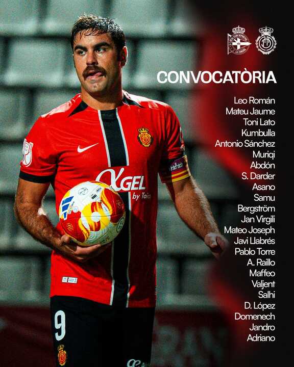 Jagoba Arrasate ha ofrecido la lista de convocados para el partido de la tercera ronda de la Copa del Rey que enfrentará al Mallorca y al Deportivo de la Corunya en Riazor. No viajan Morlanes, Mojica y Mascarell y Samú Costa regresa.
