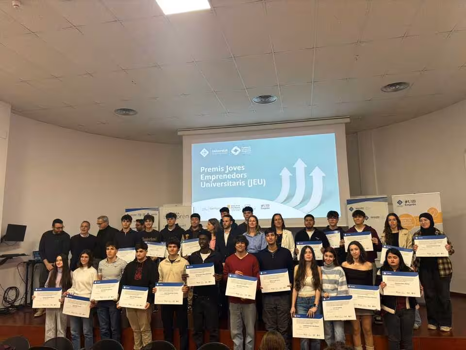 Este ha sido el tercer año en que el alumnado de la UIB ha participado en el programa «Ibemprènjove», de impulso al emprendimiento, en el marco de la Cátedra Ibemprèn. A través del programa «Jóvenes Emprendedores Universitarios (JEU)», que se ejecuta en la asignatura de Empresa y Sociedad, los estudiantes se convierten en emprendedores y crean un proyecto empresarial que después pueden presentar a los Premios JEU.