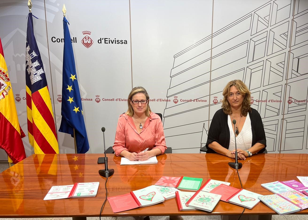 La consellera de Bienestar Social del Consell Insular d'Eivissa, Carolina Escandell, y la directora del Centro de Estudios y Prevención de Conductas Addictivas (CEPCA), Belén Alvite, han presentado este jueves la agenda escolar elaborado por la institución insular para el curso 2022-2023. En total, se han repartido 10.000 agendas entre estudiantes de Primaria y Secundaria.