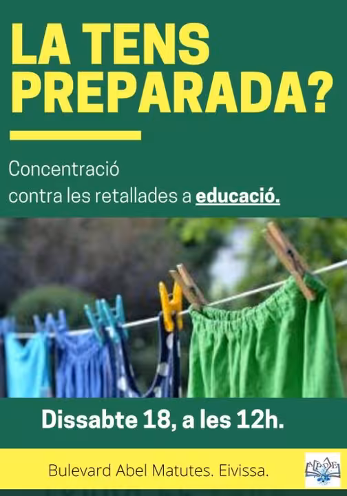 La Asociación Profesional de Docentes de Eivissa (APDE) ha declarado este jueves que mantendrá la protesta del próximo sábado contra los recortes de las asignaciones a centros educativos públicos de Balears. Tras la reunión de este miércoles con Educación, "no se han visto cumplidas las expectativas", han asegurado.