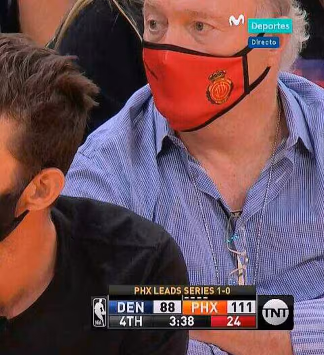 El presidente del Real Mallorca, Andy Kohlberg, sorprendió con una mascarilla de la entidad mallorquinista en el duelo entre los Phoenix Suns y los Denver Nuggets de playoff de la NBA.