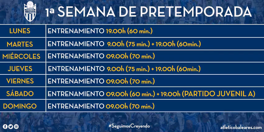 Será la primera sesión del nuevo cuerpo técnico liderado por Armando De la Morena, con los 6 nuevos fichajes, el delantero Rodrigo Cuenca (que vuelve de la cesión en La Pobla de Malfumet de 3ª división donde hizo 11 goles) y los juveniles Pedro Ortiz, Dani Liñares y Ilias, así como los cedidos al Constancia, Riad y Biel Coll, que también harán la pretemporada.