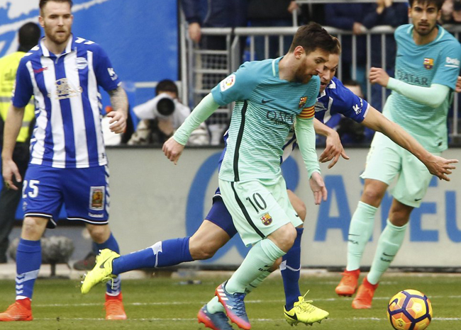 El Barcelona hizo un set en blanco al Alavés en Mendizorroza (0-6), en partido de la vigésima segunda jornada de LaLiga Santander con goles de Luis Suárez y Neymar que se presentaba como un adelanto de la final de la Copa del Rey que dirimirán ambos equipos.