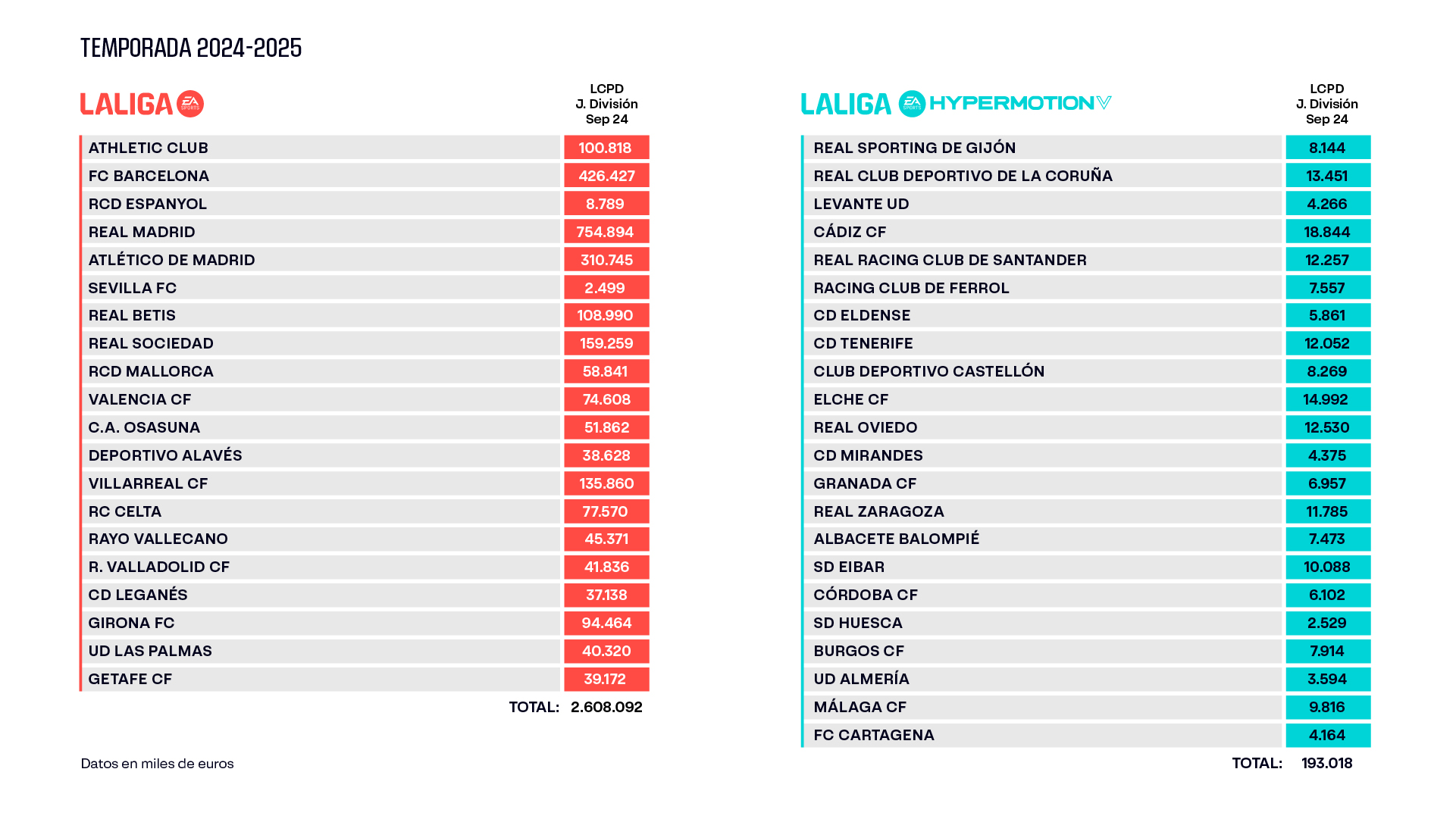 En la jornada de este jueves LaLiga ha oficializado los límites salariales de los clubes de Primera y Segunda.