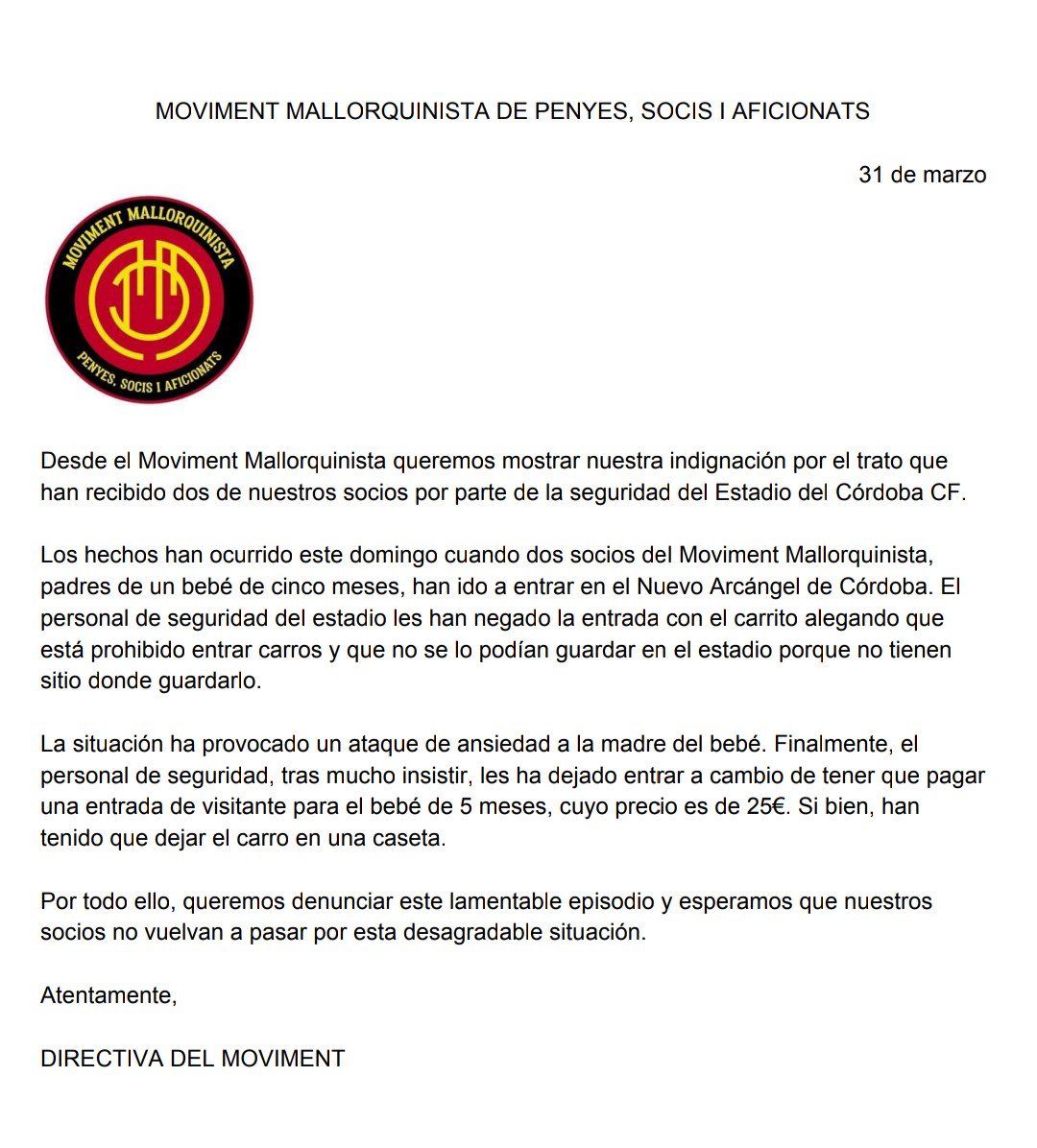 Moviment Mallorquinista indignado por el trato a dos aficionados en Córdoba Sebastián Canals 31 de marzo de 2019 (21:30 h.) Etiquetas futbol Leer más Etiquetas futbol