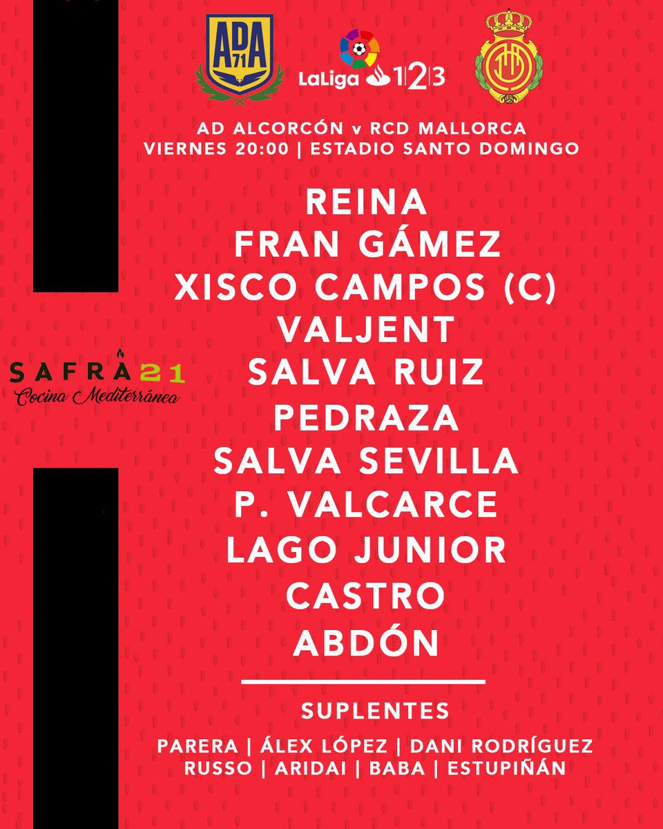 Ya se conoce el once del Real Mallorca ante la AD Alcorcón en la tercera jornada de la Liga 123. Las novedades son las de Valjent por Alcorcón y las de Pablo Valcarce por Aridai.