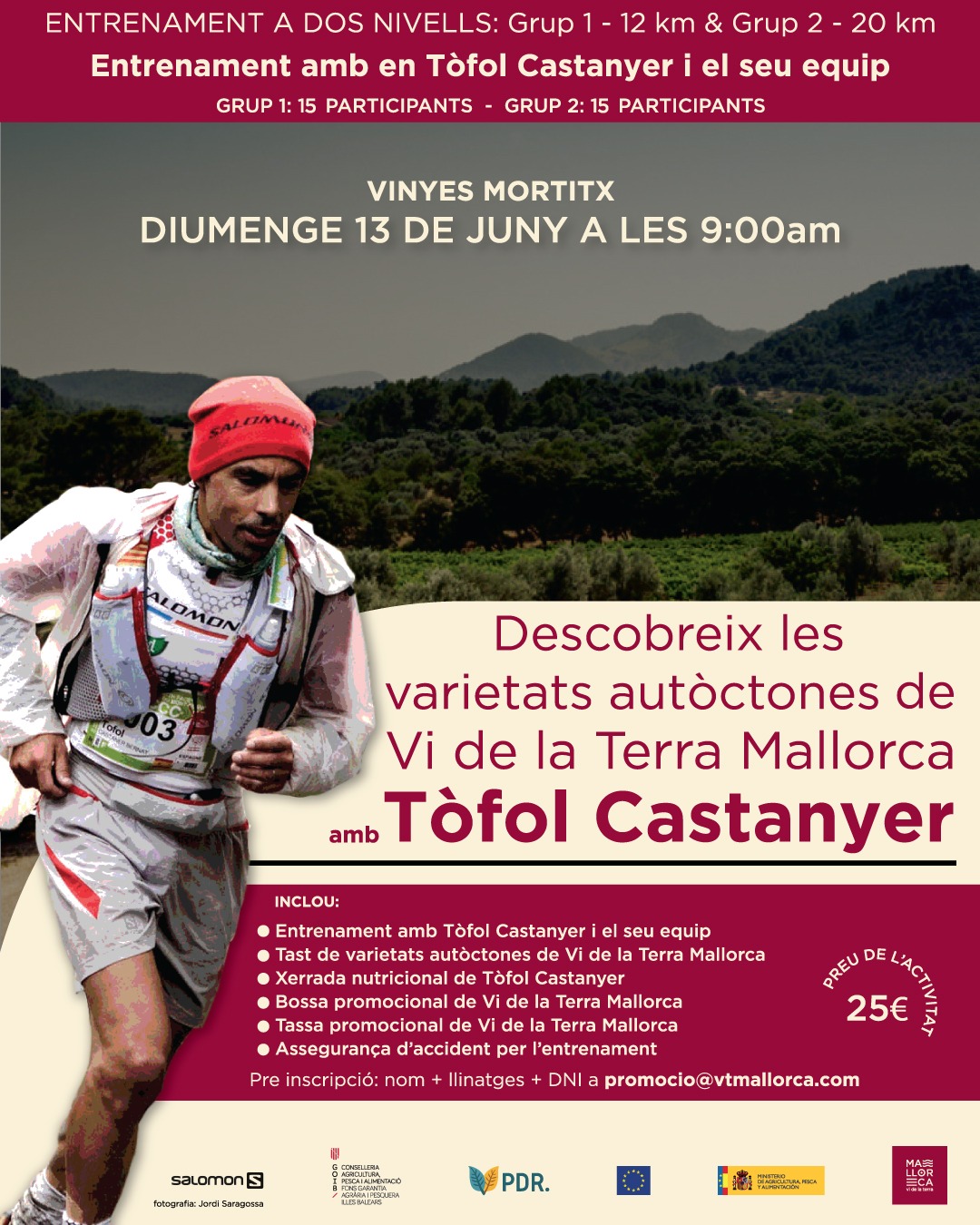 Anímate a participar al evento organizado por Vi de la Terra Mallorca y disfruta de un entrenamiento de trail de montaña guiado por el atleta profesional Tòfol Castanyer en la Bodega de Mortitx en Pollença.