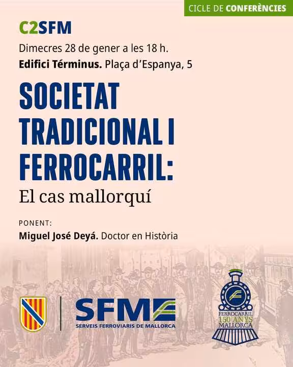 Con este ciclo de ponencias, que tendrá continuidad a lo largo de todo 2026, SFM pretende realizar un recorrido por el pasado y el presente del relato histórico y social de la isla, así como analizar la evolución de la movilidad en Mallorca, con atención especial al ferrocarril y a su impacto en la transformación de la sociedad mallorquina.