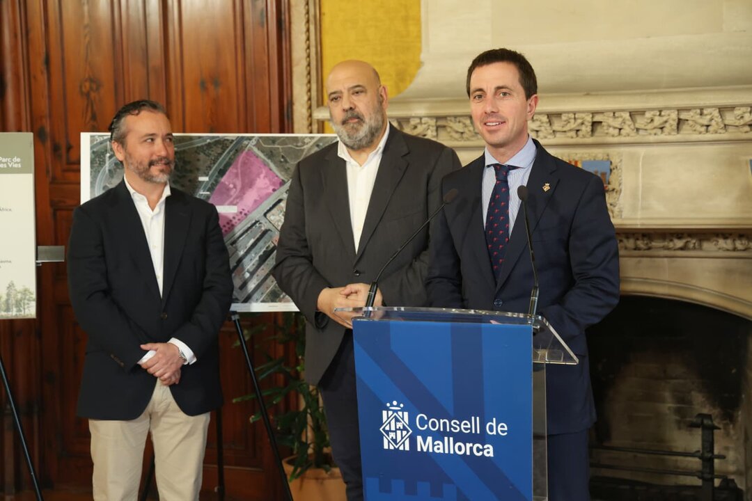 El presidente del Consell de Mallorca, Llorenç Galmés, y el alcalde de Palma, Jaime Martínez, han formalizado hoy el acuerdo de cesión gratuita de una parcela de 13.000 metros cuadrados, propiedad de la institución insular, para ubicar el futuro Jardín Botánico de Palma que está impulsando el Ayuntamiento en el marco del proyecto «Bosque Metropolitano». Este acuerdo deberá ser ratificado por el pleno de la insitución insular.