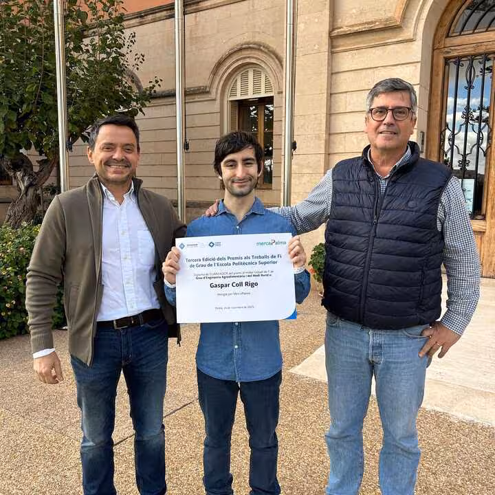 El Instituto de Investigación y Formación Agraria y Pesquera de las Illes Balears (IRFAP), entidad pública adscrita a la Conselleria de Agricultura, Pesca y Medio Natural, celebra que el trabajo de fin de grado del alumno Gaspar Coll Rigo haya sido reconocido como el mejor proyecto del grado de Ingeniería Agroalimentaria y del Medio Rural de la Universidad de las Illes Balears.
