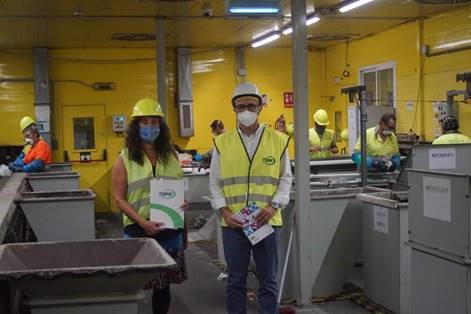 Se adjunta foto de Francesca Martí y Rafael Guinea en la visita que realizaron a la planta de selección de envases tras la firma de la renovación convenio de colaboración.