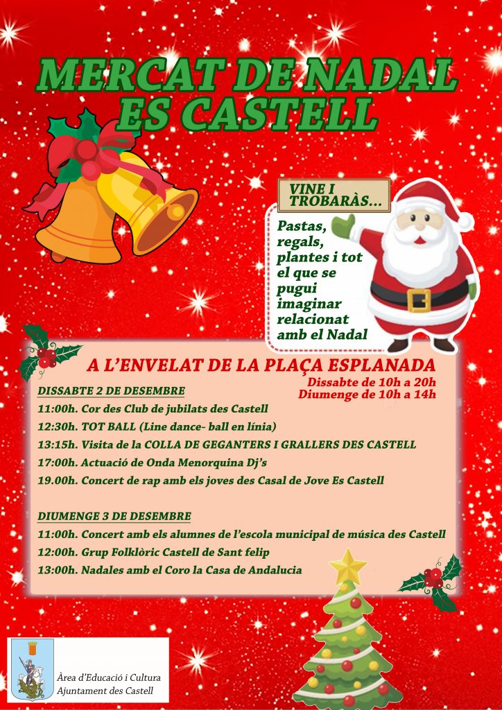 Es Castell comienza las fiestas de navidad, un año más, con el Mercat de Nadal de productos típicos de estas fechas tan señaladas en el calendario. Días 2 y 3 de diciembre en la Plaça Esplanada.