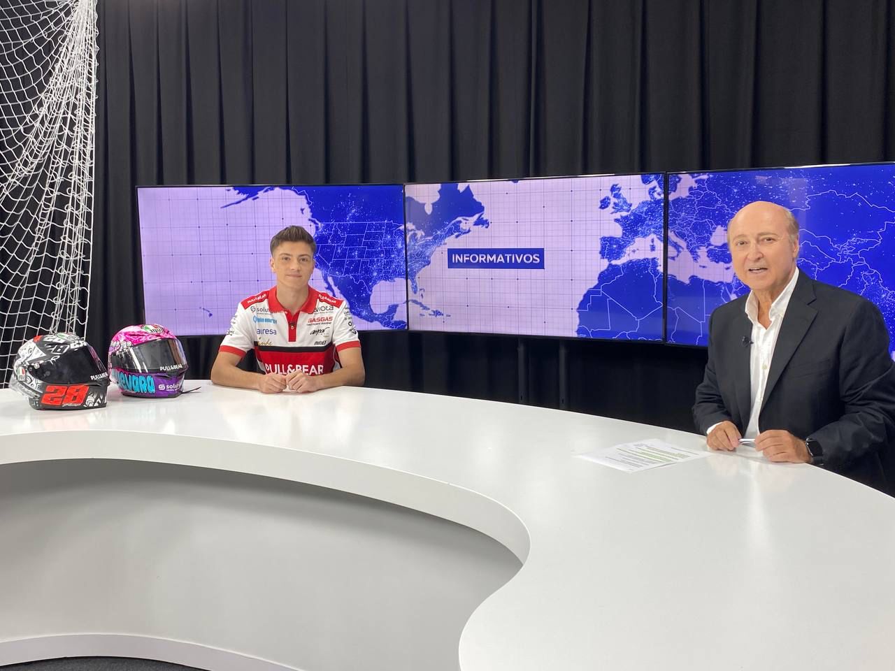 Izan Guevara, piloto mallorquín en el Mundial de Moto2, fue el invitado en la sección de deportes de los informativos de Fibwi4 en la jornada de este martes.