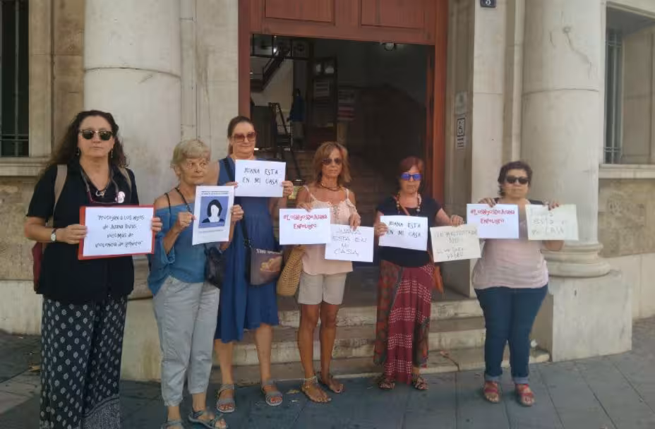 Un grupo de mujeres se ha congregado a las puertas de los Juzgados de Vía Alemania de Palma para solidarizarse con Juana Rivas, la mujer de Maracena (Granada) en paradero desconocido desde el pasado 26 de julio.