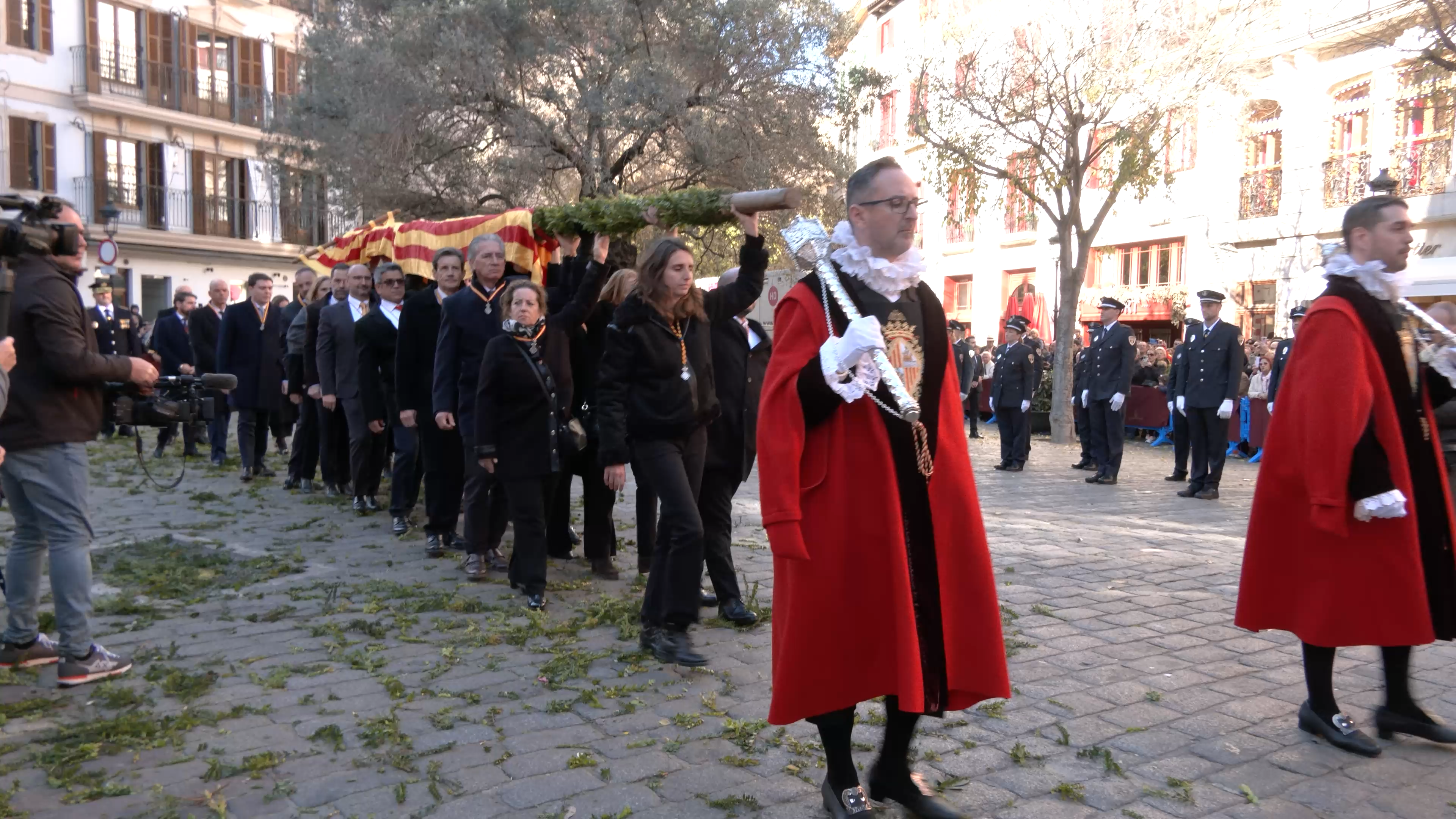 El público, emocionado, ha observado con respeto el momento que simboliza la integración de Mallorca en el ámbito de la Europa cristiana hace casi 800 años. El tradicional séquito, encabezado por la Policía Montada y los inconfundibles Tamborers de la Sala, ha partido desde Cort hacia la catedral de Palma, conocida como La Seu.