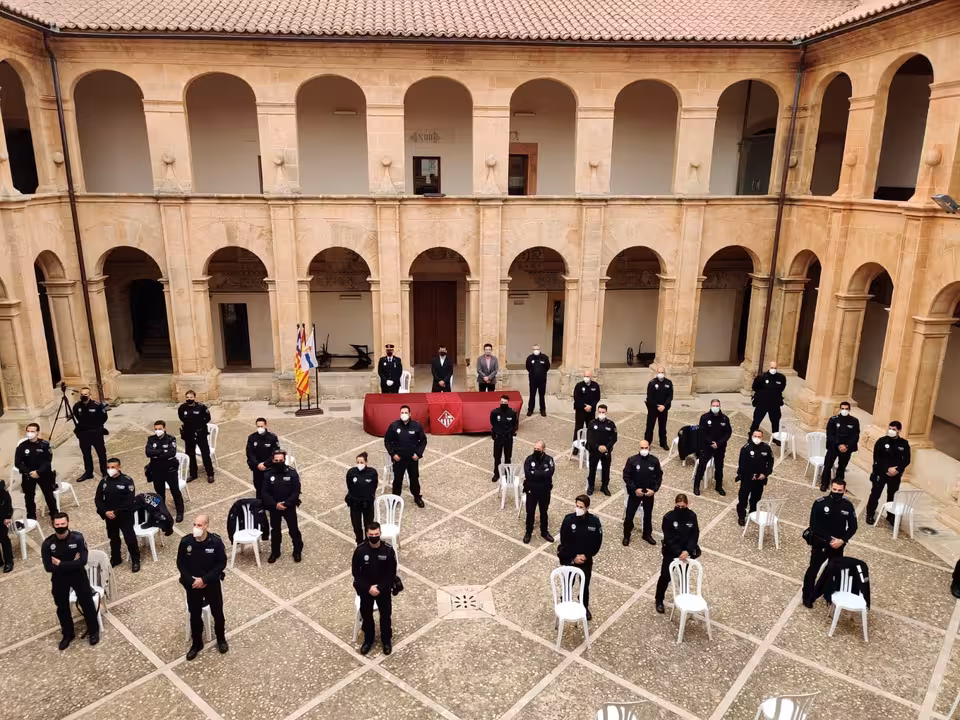 El claustro de Sant Bonaventura ha sido el escenario de la toma de posesión del acta de funcionario de carrera del Ajuntament de Llucmajor de 31 policías locales.