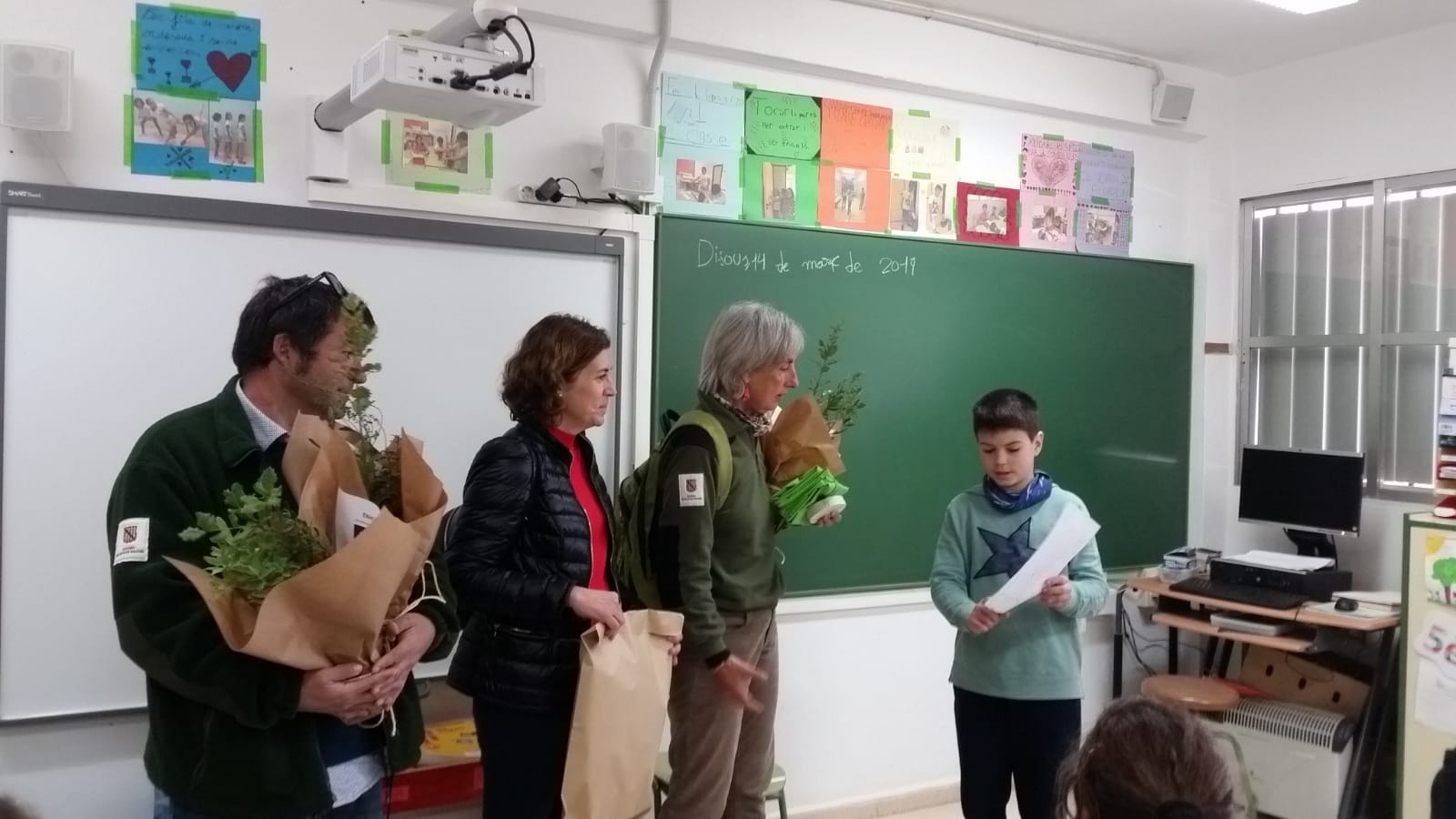 Los alumnos han recibido unas plantas y una fiambrera para llevar panecillos de parte del Consell, además de una mochila, un conjunto de bolsas de reciclaje y una bolsa reutilizable de parte del Ajuntament.