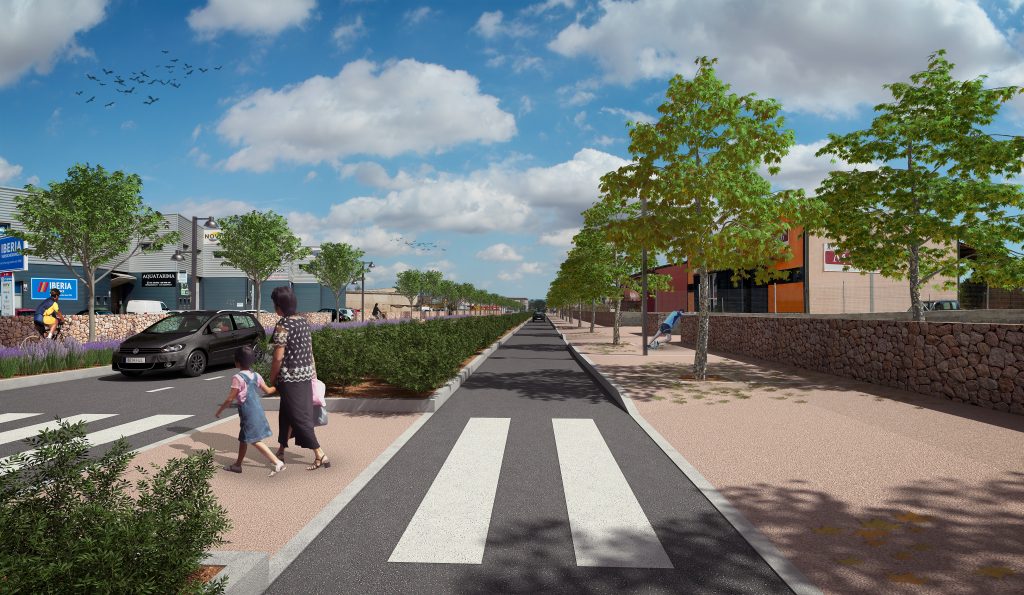 En esta línea, en lugar de vías de servicio tendrá caminos que respetarán la orografía actual de la zona y tendrán unos cinco metros de ancho. Además, dotarán la travesía de entrada a Campos de un paseo peatonal, vía ciclista y zona ajardinada y arbolada.